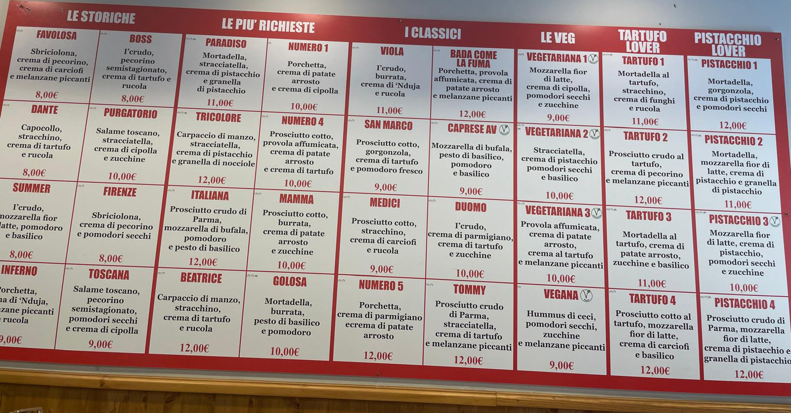 I can recommend the Pistachio 4 (Parma prosciutto crudo PDO 18 months, fior di latte mozzarella, pistachio cream, and pistachio granules). Yeah. It sounds weird. But if you don’t try a pistachio sandwich at least once in your life you’re going to kick yourself when you get home. Also, it’s delicious.